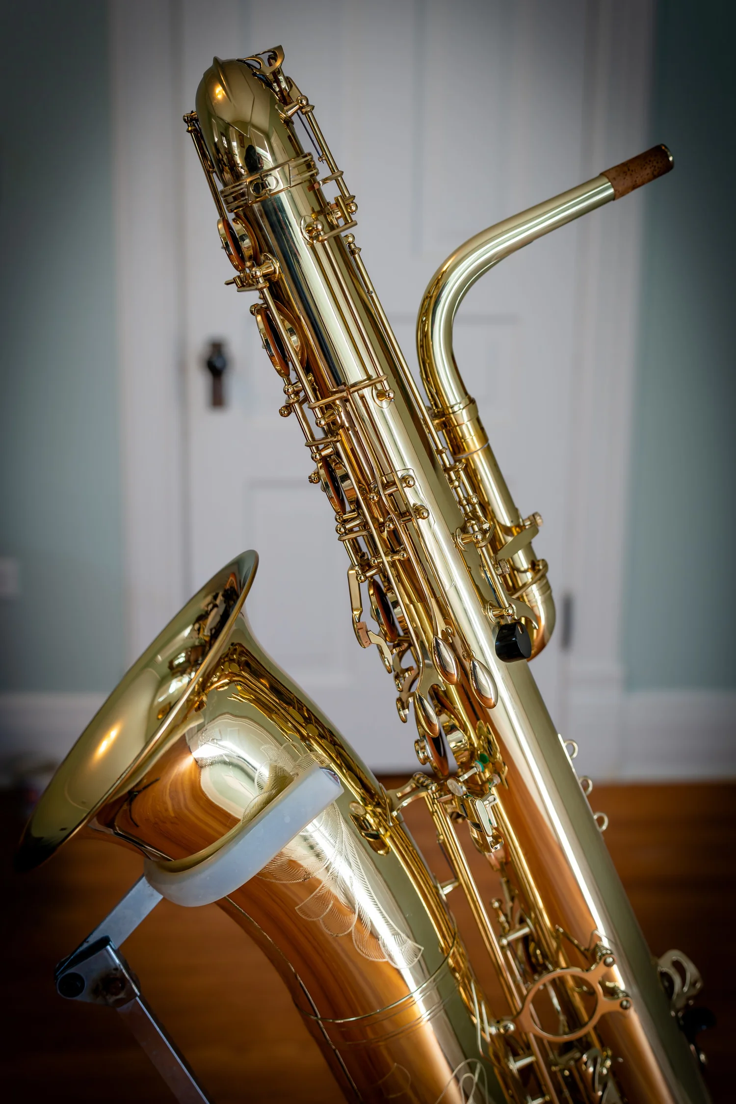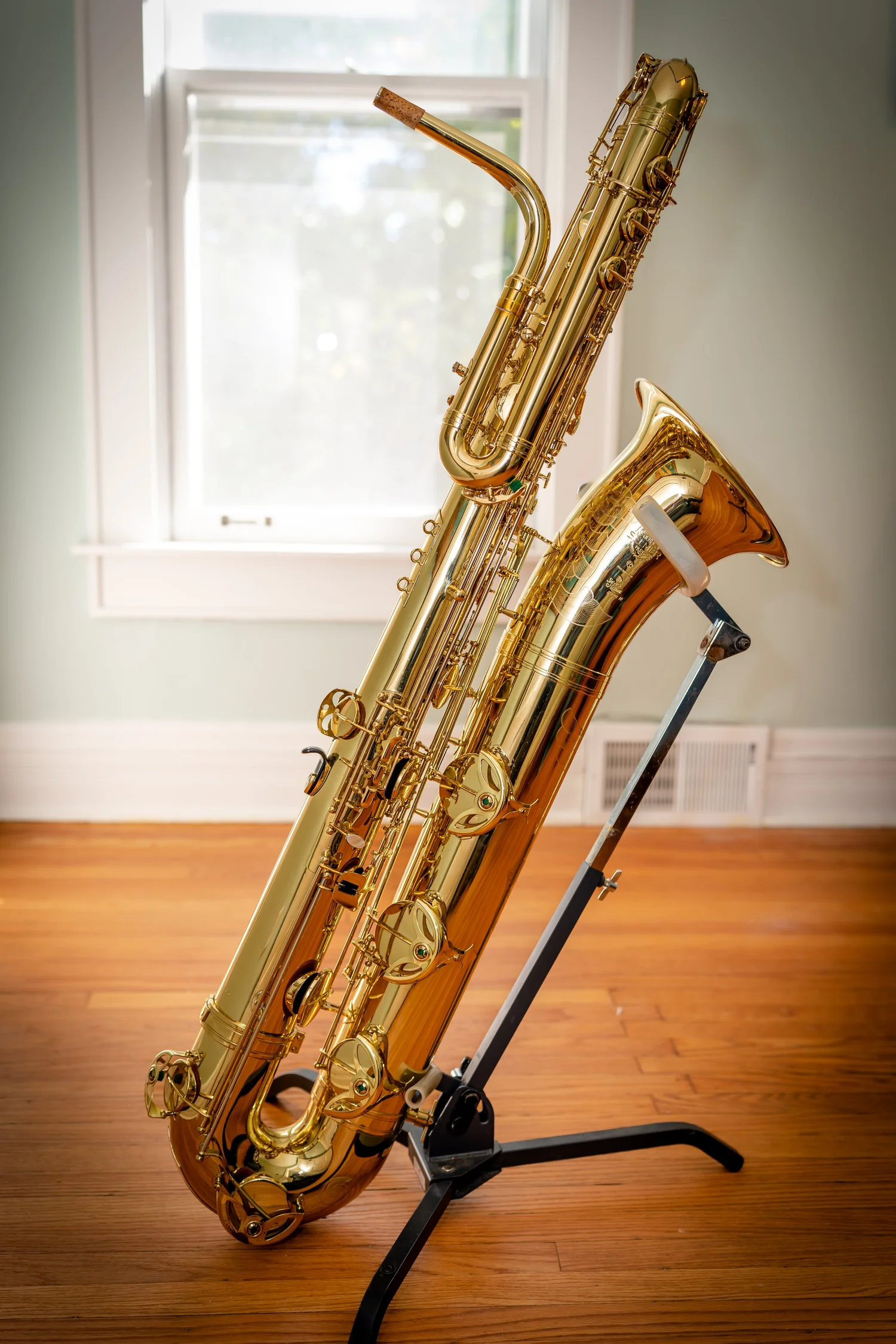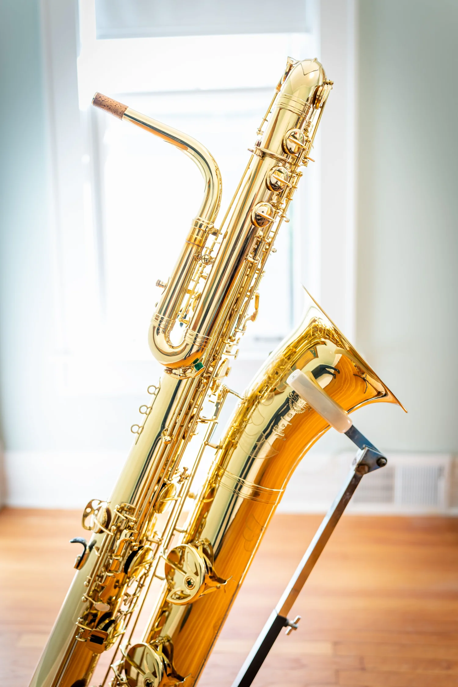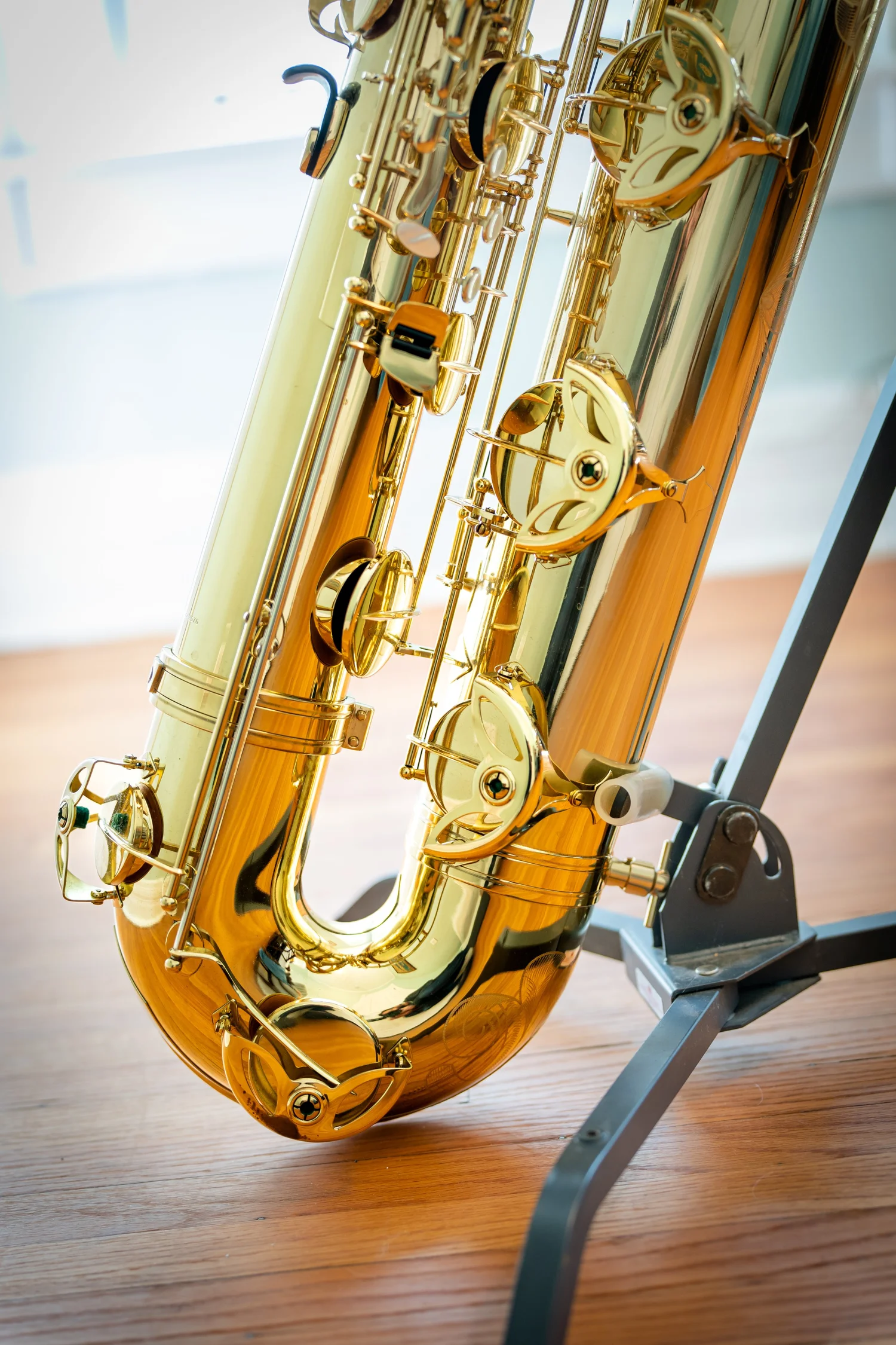 This bass saxophone comes from the collection of Taimur Sullivan, Professor of Saxophone at Northwestern University and baritone saxophonist of the PRISM Quartet.