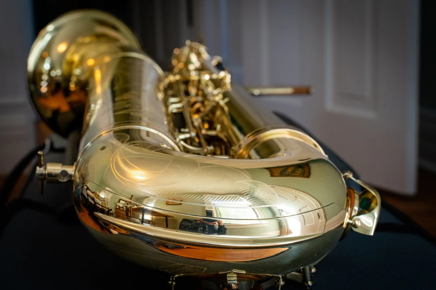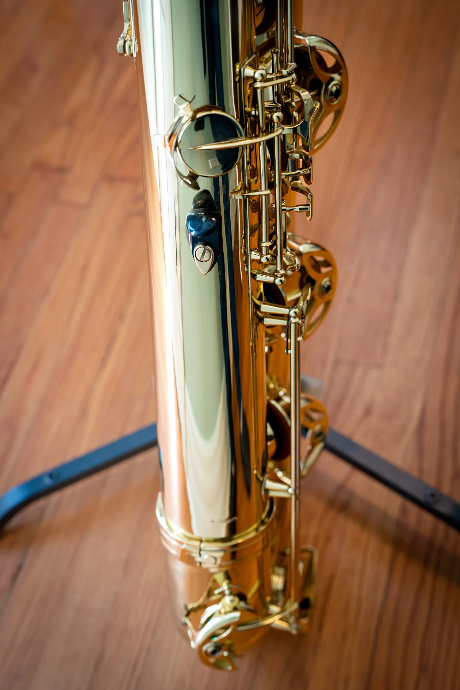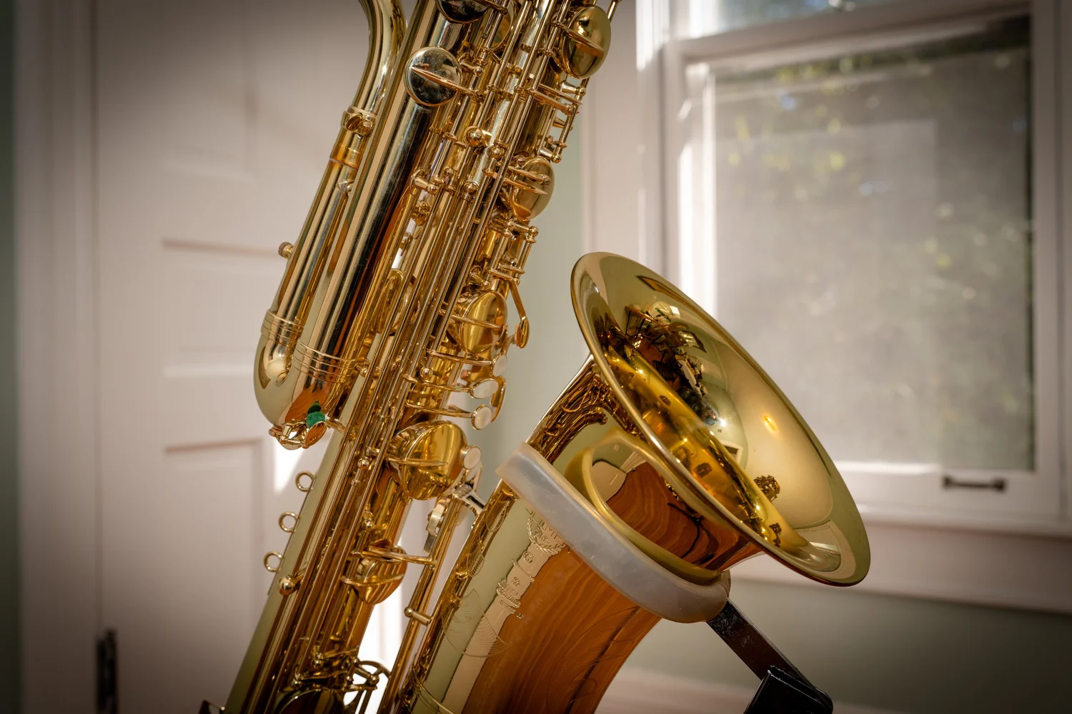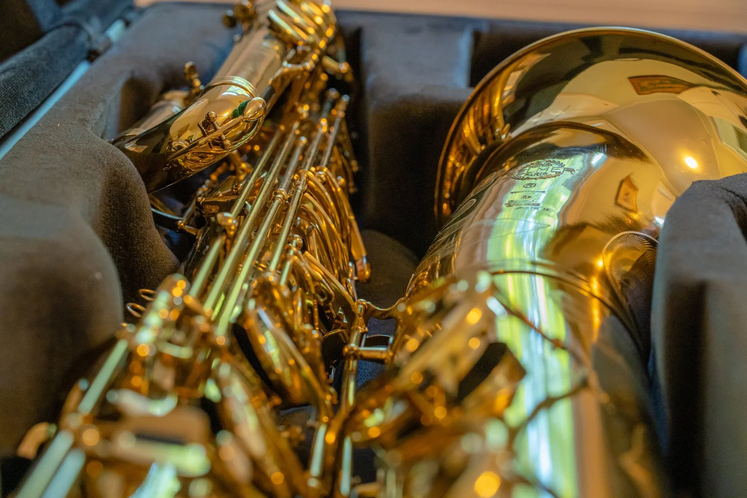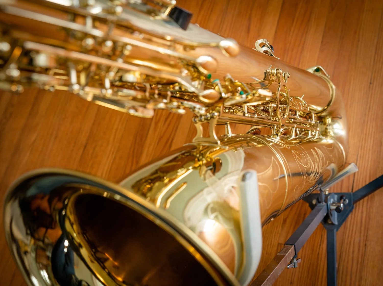 This bass saxophone comes from the collection of Taimur Sullivan, Professor of Saxophone at Northwestern University and baritone saxophonist of the PRISM Quartet.